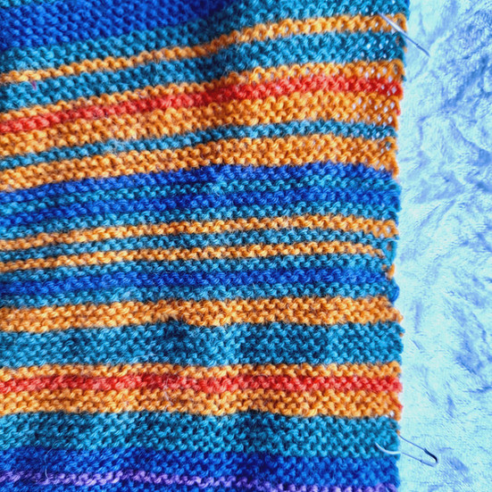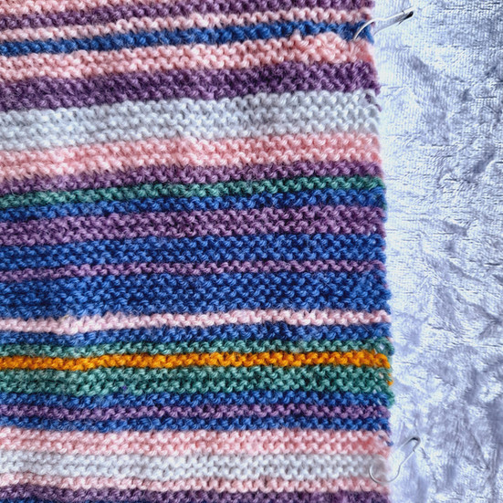 My project was to make a shawl, the finished garment will be aprox 23" or 60cm wide by 80" or 200cm long, but you can make it as wide or as narrow as you want. Using 4 ply yarn and knitting 2 rows a day it will always come out aprox 175cm long.